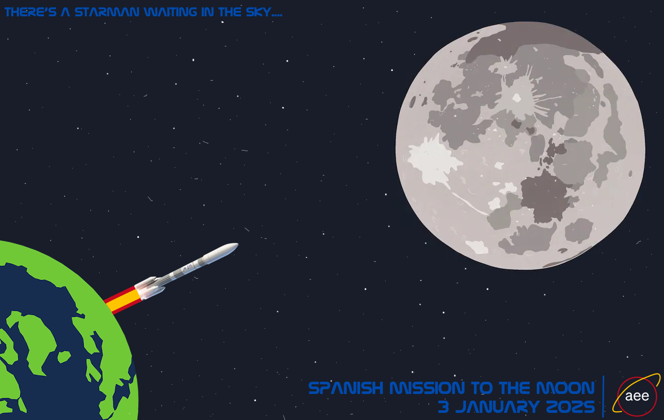 The Spanish Government, the Ministry of Science, Innovation and Research and the Agencia Espacial Española - Spanish Space Agency (AEE - SSA) officially revealed today the poster for the Spanish Mission to the Moon, beginning on 3 January 2025. The Miura I will be launched from the Spaceport located in Sertia, at 05.00 Local Time. Their Majesties the King and the Queen, Her Royal Highness the Princess of Asturias, the President of the Spanish Government, the Minister for Foreign Affairs, European Union and Cooperation, the Minister of Science, Innovation and Research, the Spanish Councillor and Speaker of the European Council, the Secretary-General of the Spanish Commonwealth and Former Presidents Jean-Claude Juncker and Jesús Aguilar, will attend the launch on Sertia, travelling on 2 January 2025. General Carlos Brown and General Laura Potter will join them at Sertia, alonside Sertian and Nofoagan authorities, including the Head of the Braetha Fornithias Cranst, President Lula Namatatiki or the Spanish Representative in the Nofoagan Parliament, Marian Fonseca; amongst other authorities.